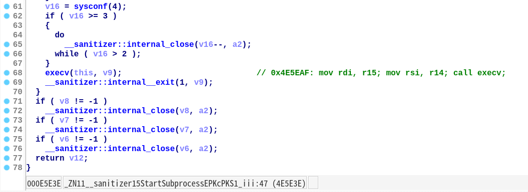 __asan::error_report_callback指向0x4E5EAF(execvgadget); - 任意地址写,修改